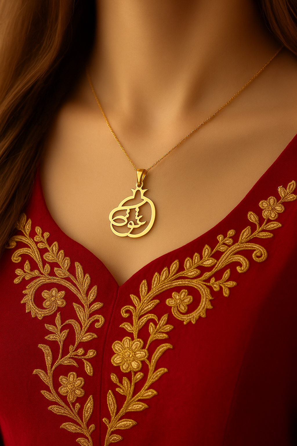 انار از دیرباز نشانه ی عشق و زندگی بوده است. طراحی این آویز طلای ظریف با نوشتهی عشق، حس لطافت و احساس را در هر نگاه زنده میکند. این زیور میتواند در شب یلدا، سالگرد ازدواج یا مناسبتهای عاشقانه هدیهای از مهر و پیوند باشد.