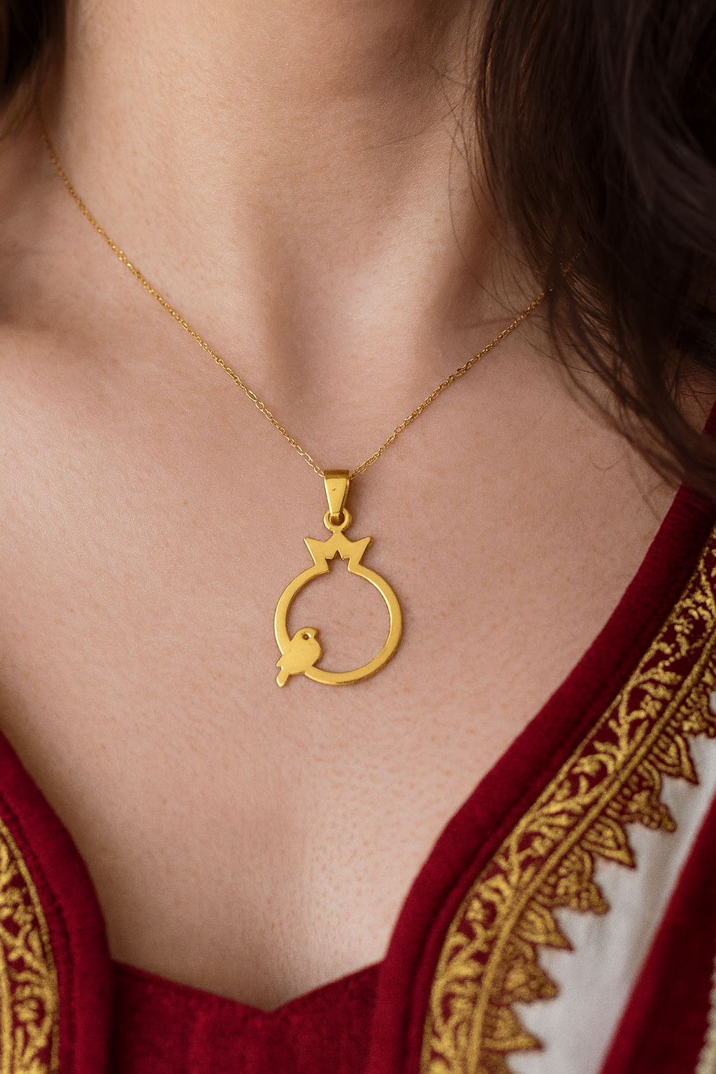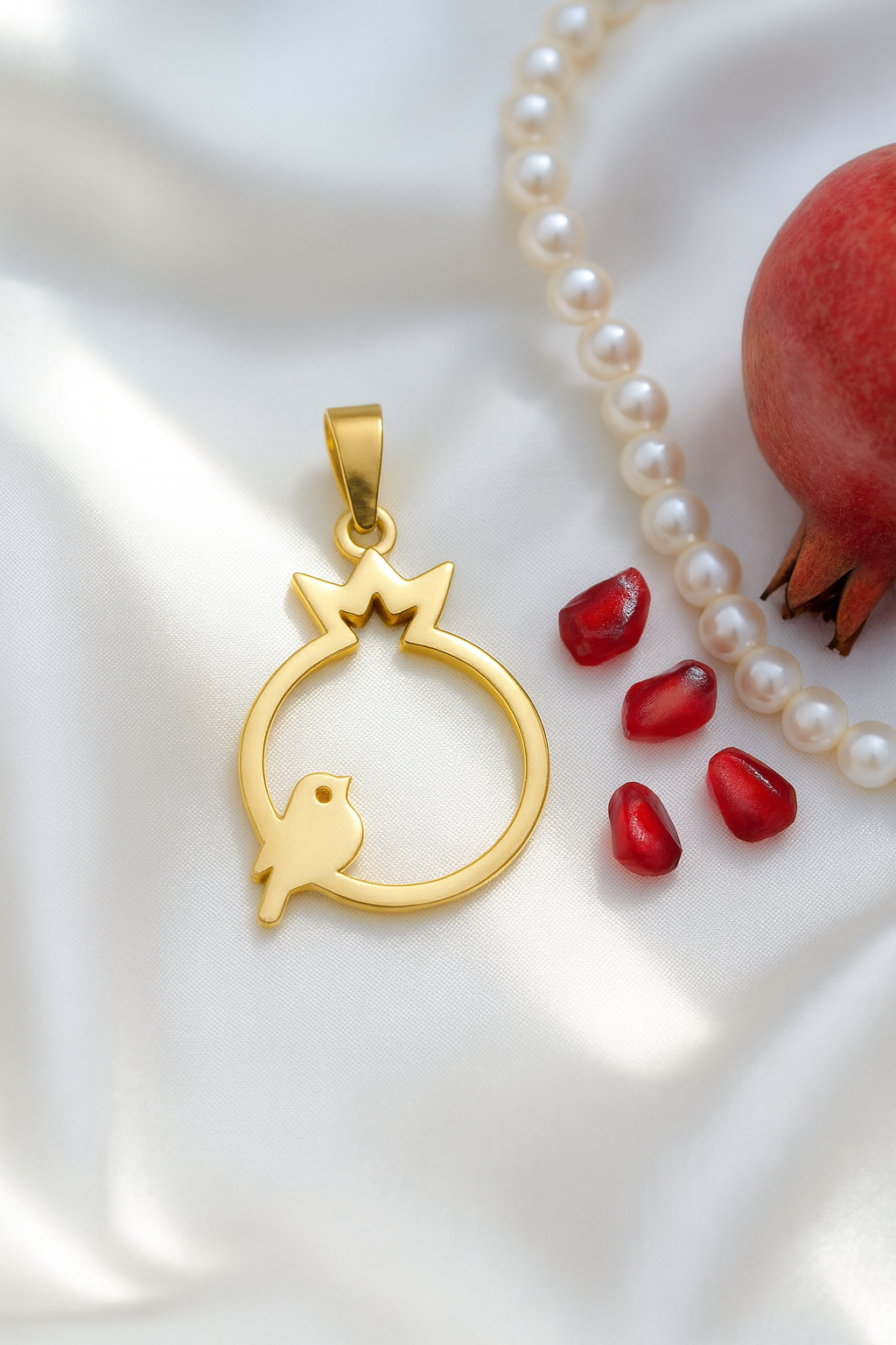 ❤️ آویز طلا انار با پرنده؛ نمادی از عشق، آزادی و زندگی