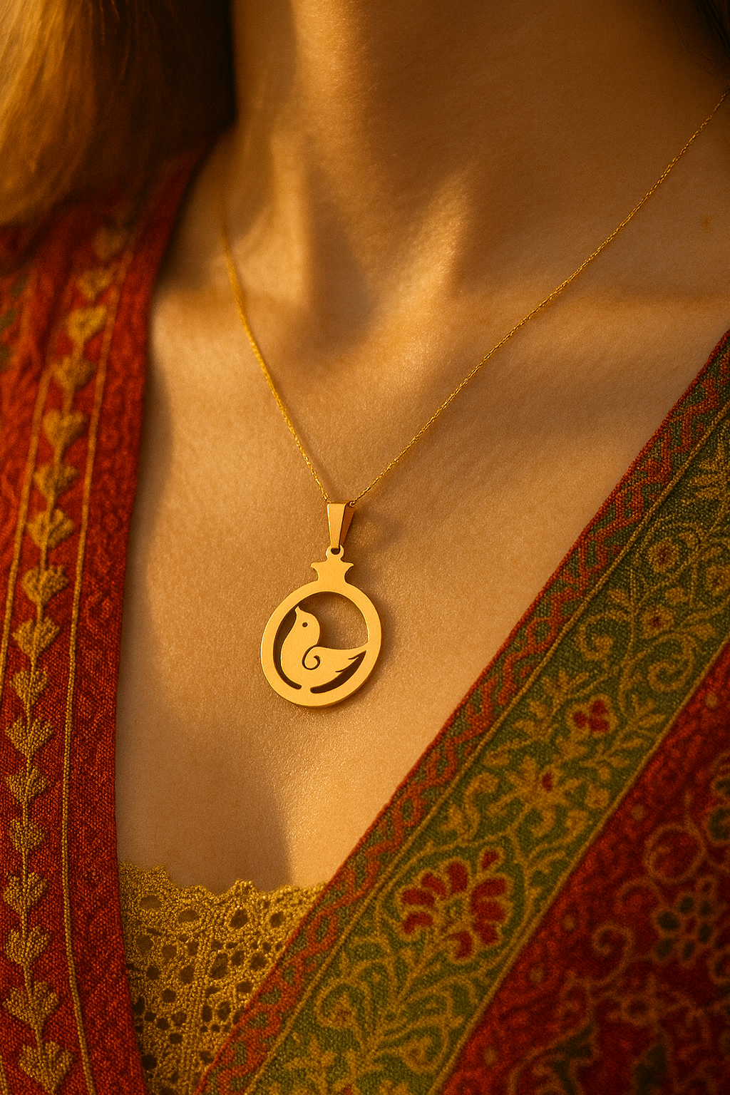 این آویز طلا با الهام از نماد انار و پرنده، حس لطافت، آزادی و عشق را در دل خود دارد. طراحی ظریف آن برای کسانی ساخته شده که زیبایی را در معنا می‌بینند و به اصالت اهمیت می‌دهند. درخشش طلای ۱۸ عیار آن، هر استایلی را به اثری هنری تبدیل می‌کند.